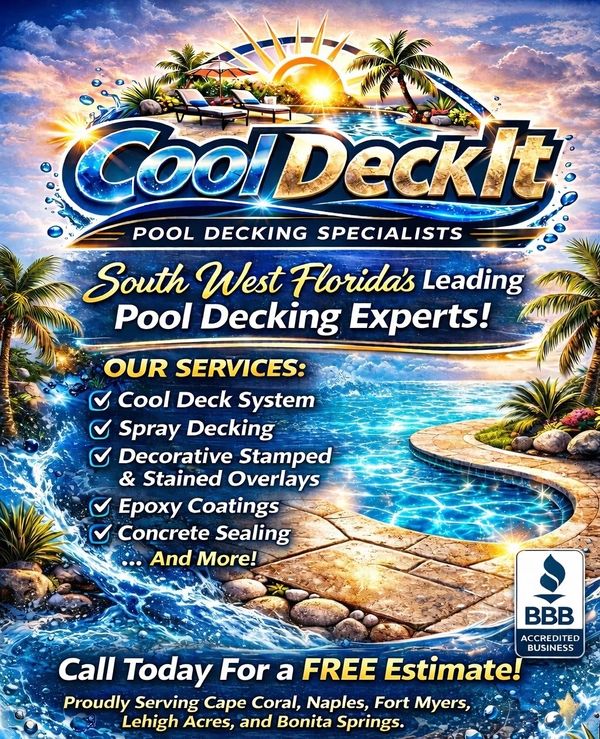 Cool Deck It offers professional pool deck painting and epoxy flooring services across Southwest Florida.